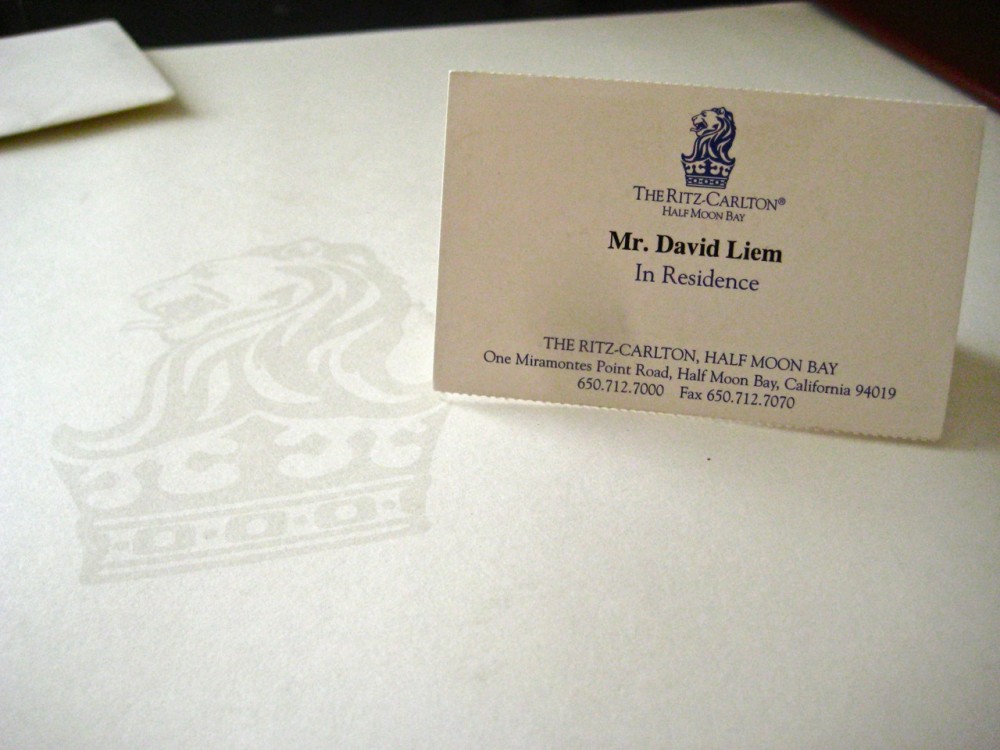 We finally make it to the Ritz Carlton Half Moon Bay. We pull up to the resort’s entrance booth, where they greet us with hospitable smiles. They take my reservation name, hand us a valet ticket for the car, and then tell us to continue to the lobby of the resort.